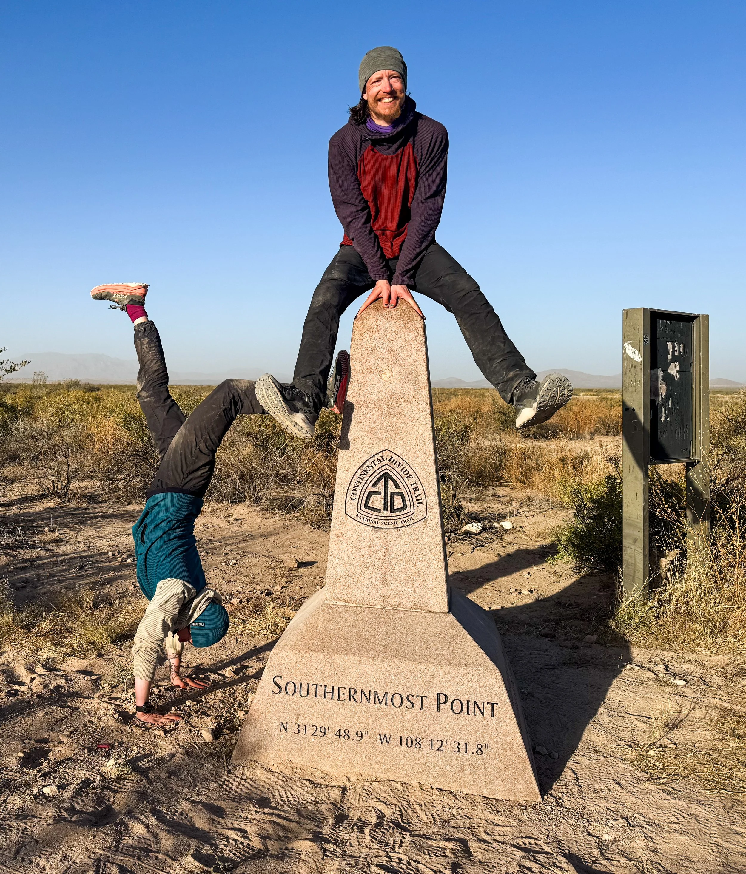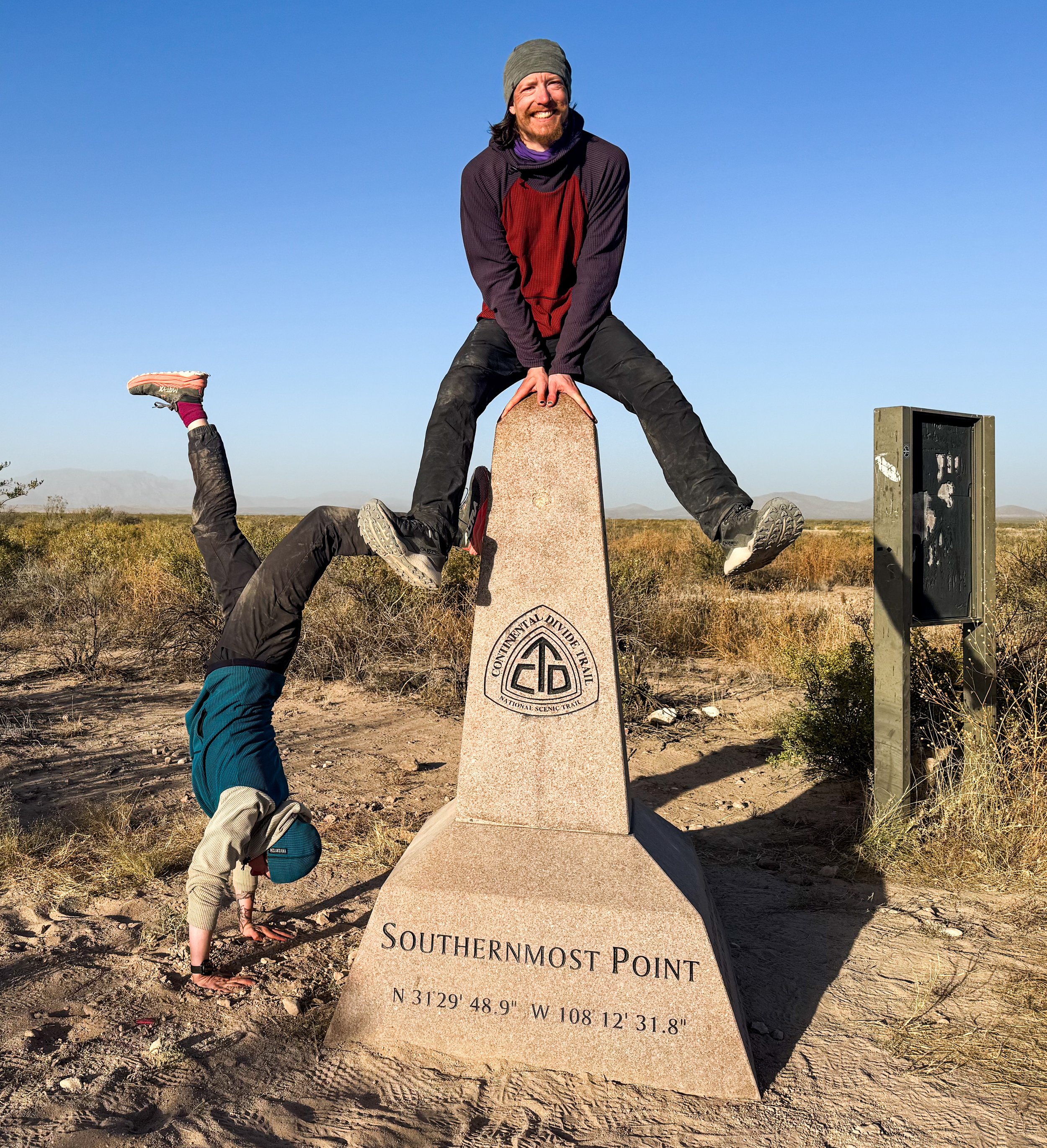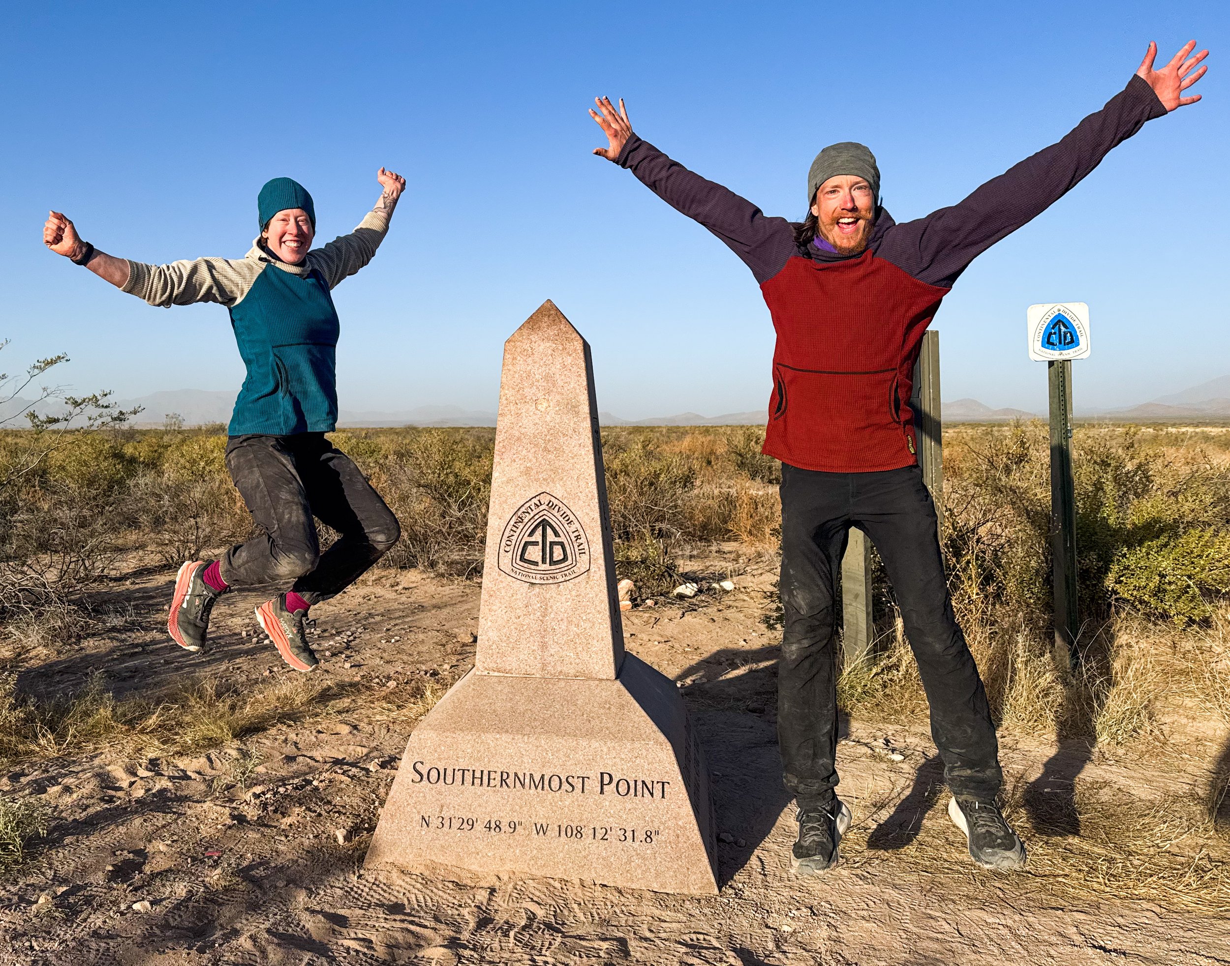We approached the monument around sunset, and a small plane flew down low overhead, circling around a few times to get a good look at us. Molly threw up a peace sign, then walked up to the monument and burst into tears. We hugged and cried and laughed and danced around the monument. It is theoretically possible that we could have stepped through a rather conveniently-sized gap in the fence to put our feet down in Mexico. We took a few silly photos, then leaned up against the monument to cook dinner and reminisce about everything we’d gone through in the past five months. Then, we set up camp under a dark and gorgeously starry sky.