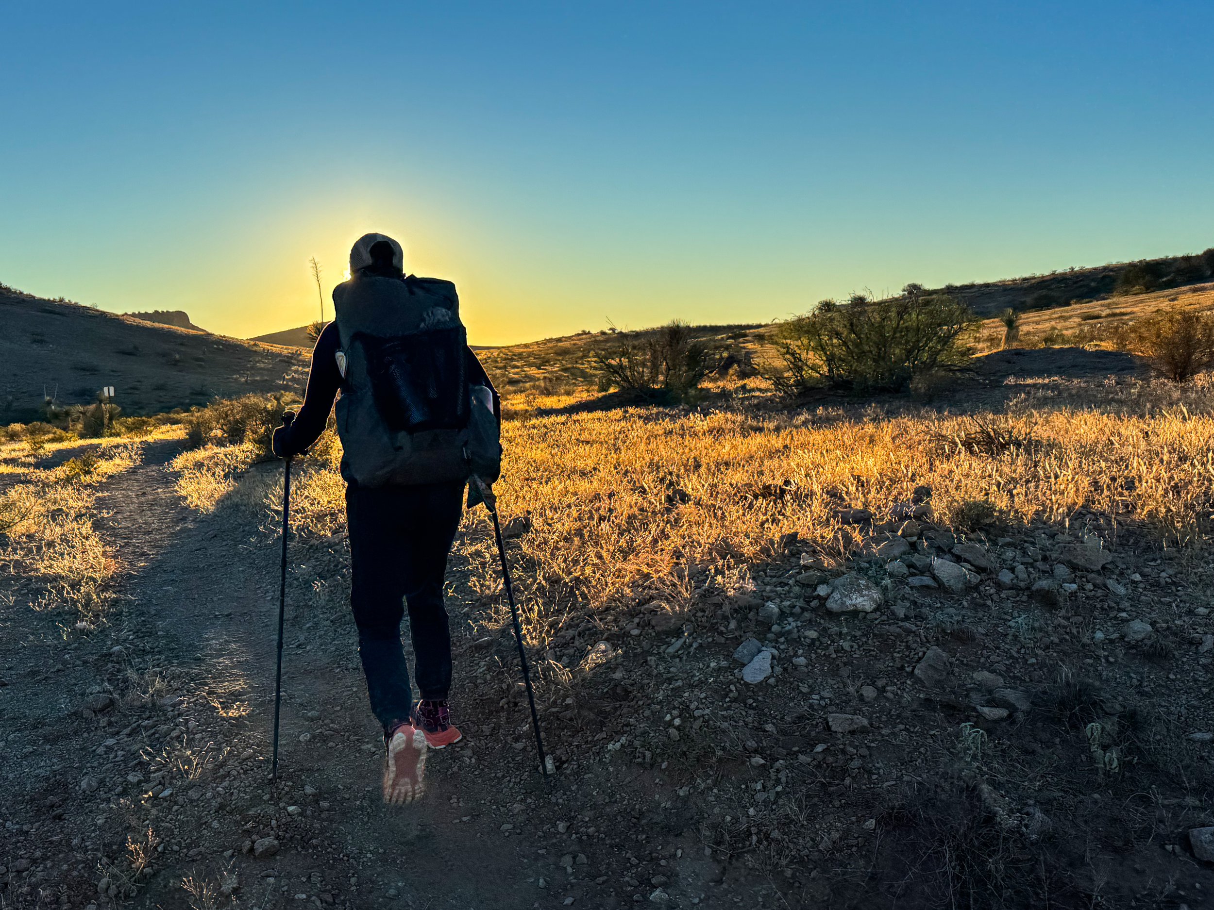 South of Lordsburg, the trail was thankfully more solid and less sandy. The walking was easy albeit fairly monotonous. We listened to some podcasts during the heat of the day, but in the mornings, we reminisced about our favorite (and least favorite) sections of trail. In this hot, exposed terrain, we cherished these cool, dark mornings when we’d navigate through the spiny forest of cacti and yucca using the reflective trail markers that trailed off far into the distance. While the sunrise put on a spectacular show, we'd argue over the top five views and made a list of the best and worst parts of living on the trail (on the good list: “Seeing so many beautiful sunrises”; on the bad list: “Can never find a comfortable seat”). We slowly began to realize that the trip was really coming to an end.