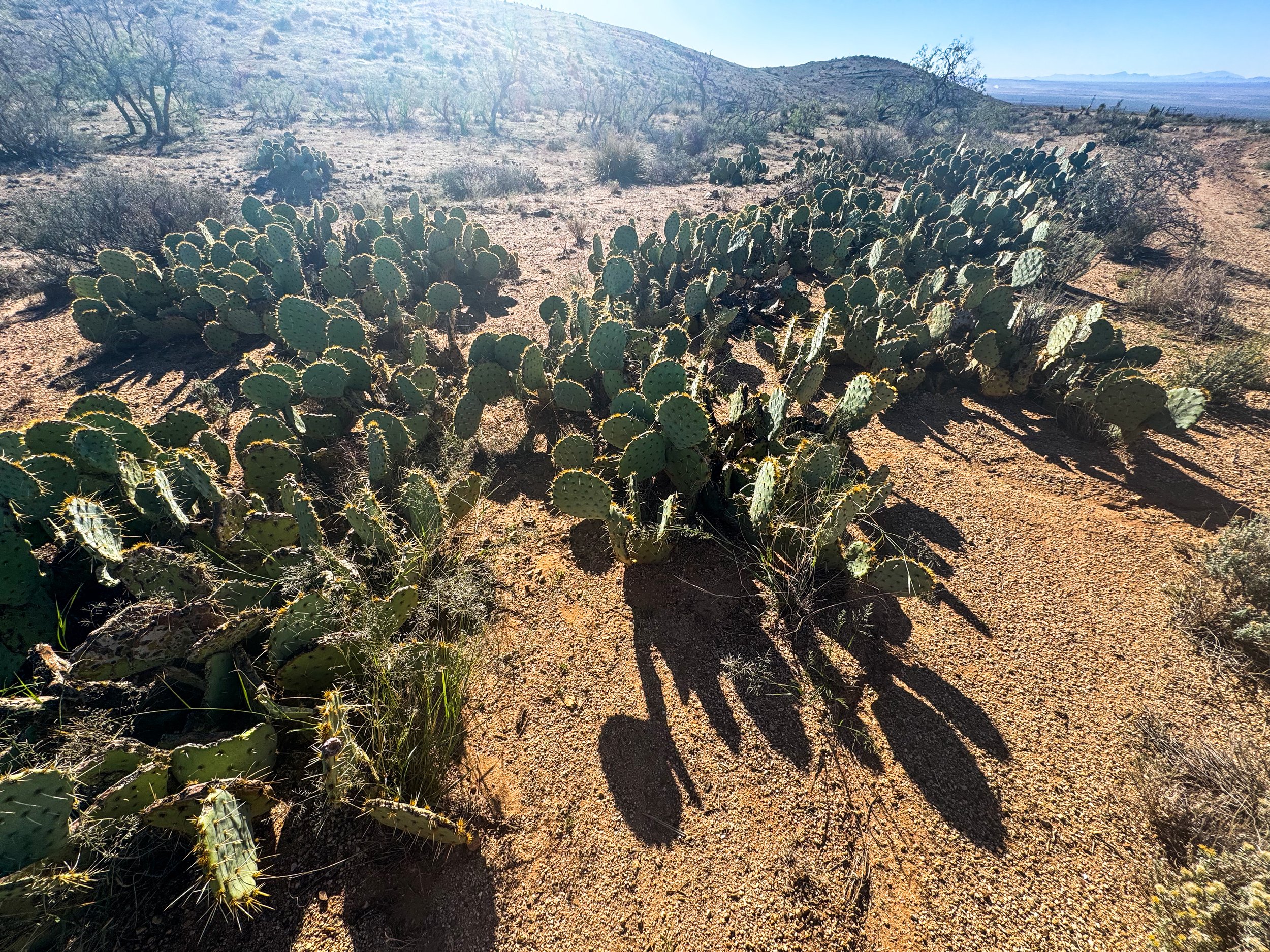 The last fifteen miles into Lordsburg are perhaps the hottest, flattest, sandiest miles on the entire CDT (which we can tell you has a few hot, flat, sandy miles). We started to see new kinds of desert flora: giant Arizona barrel cacti, fuzzy-looking pincushions, and tree-like yucca plants taller than Jonathan. We were thankful to be in southern New Mexico in November, rather than in the spring or summer when temperatures are frequently in the high 90s. Even so late in the year, the sun was intense, and there was nowhere to hide from the heat of the day.