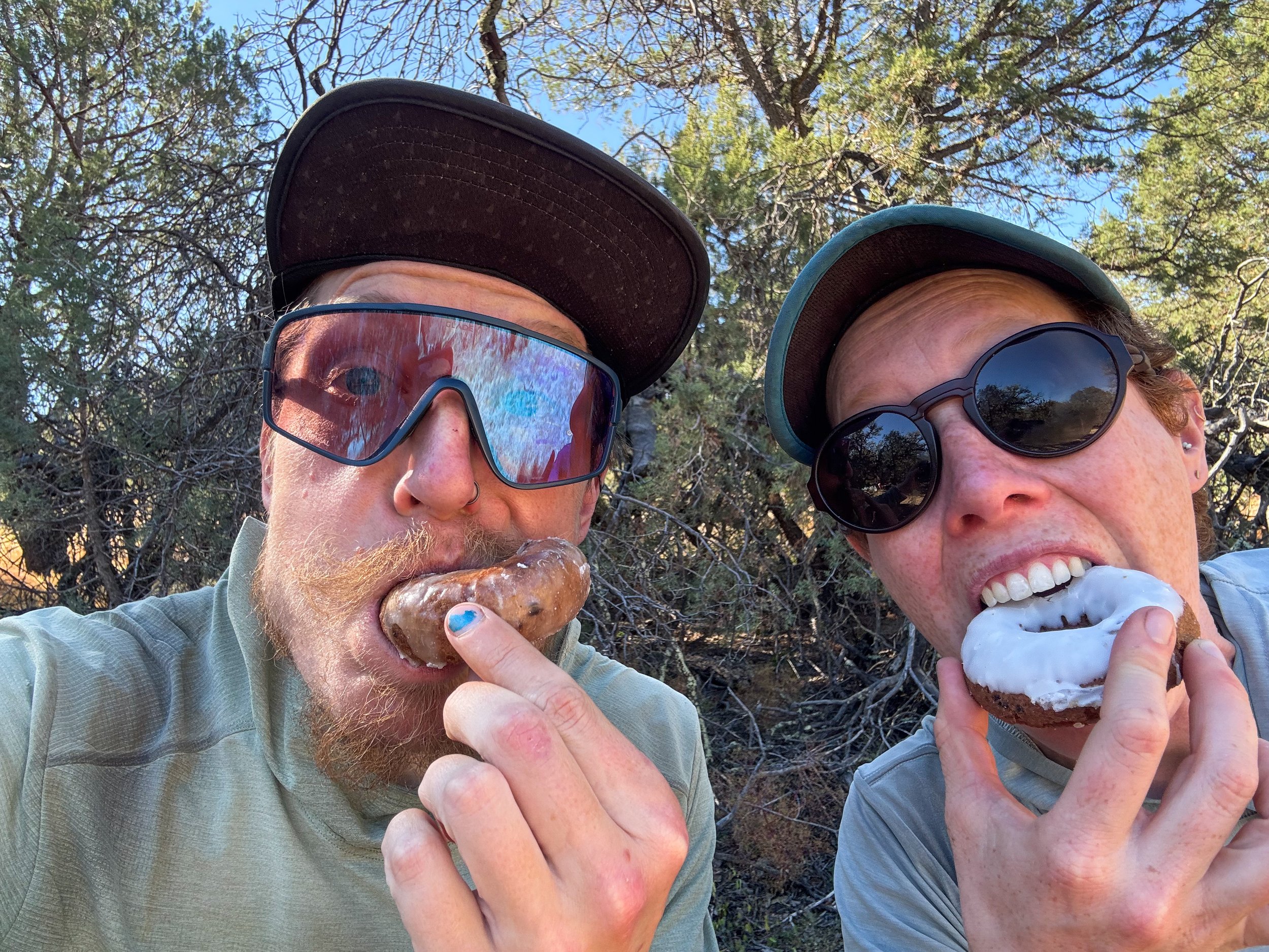 Molly and Jonathan cheesin’ with doughnuts from the water cache before Lordsburg.